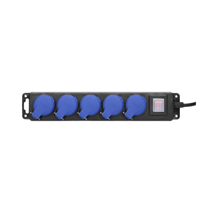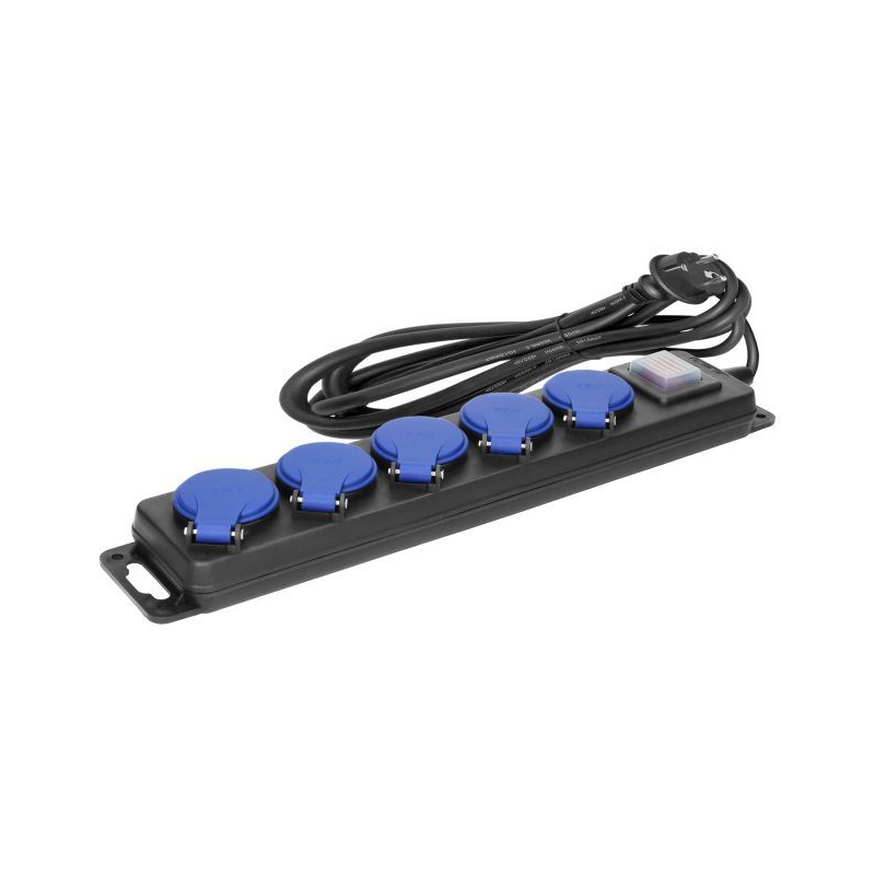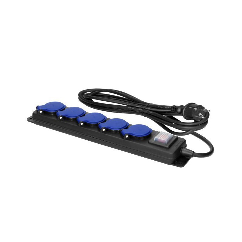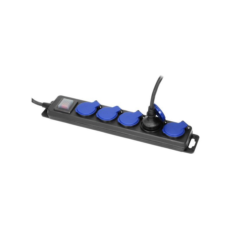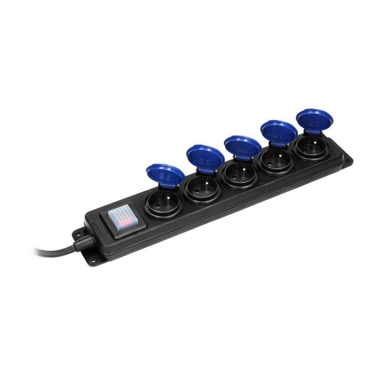 Odolná predlžovačka s gumeným káblom, 5x zásuvka s krytom.
