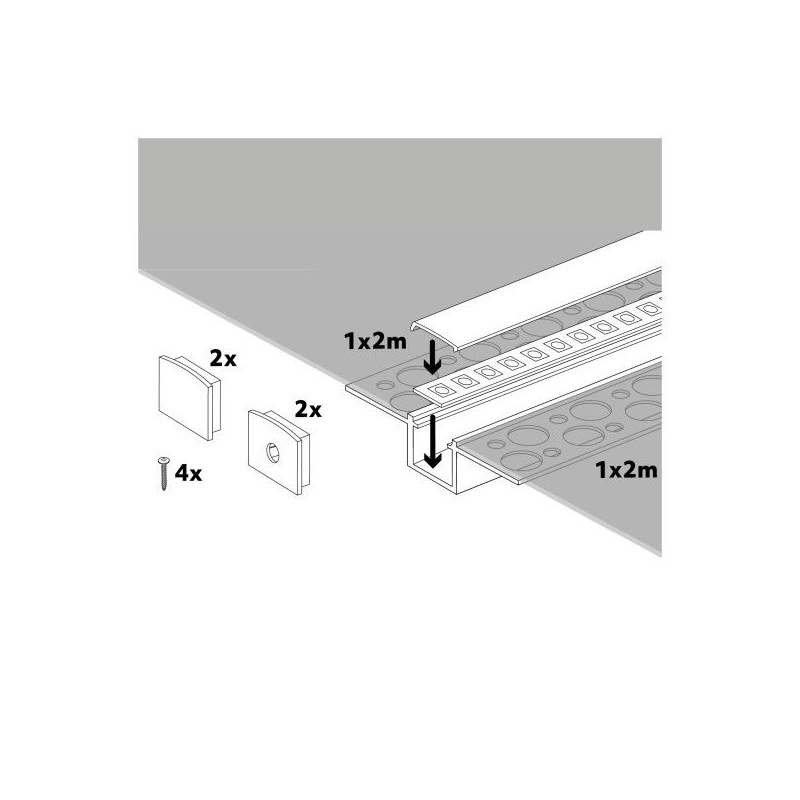 Hliníkový LED profil KG01 pod omietku + mliečny kryt 2m