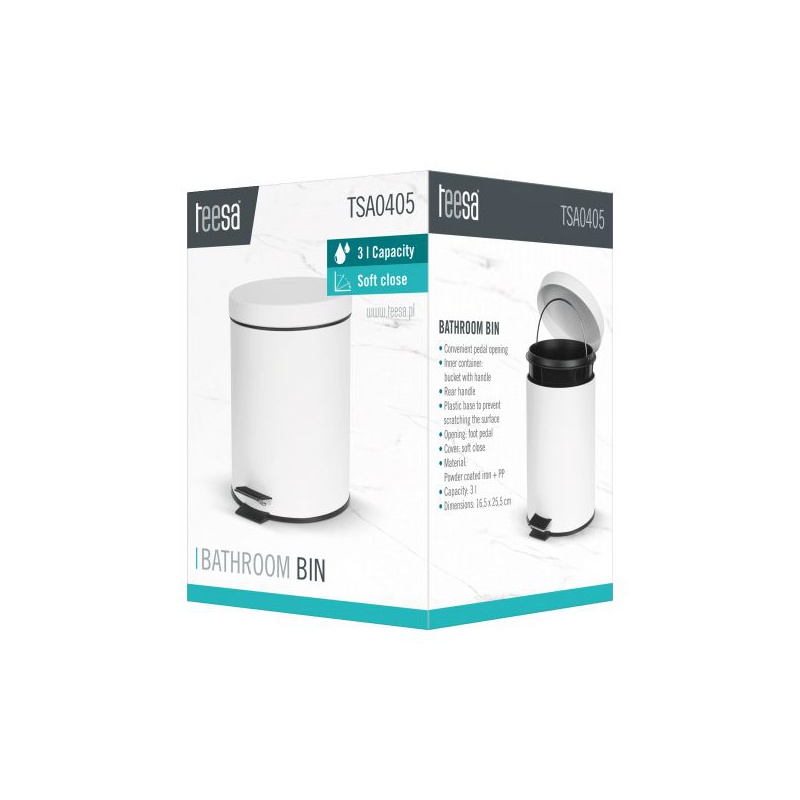 TSA0405 Odpadkový kôš do kúpeľne 3l biely TEESA